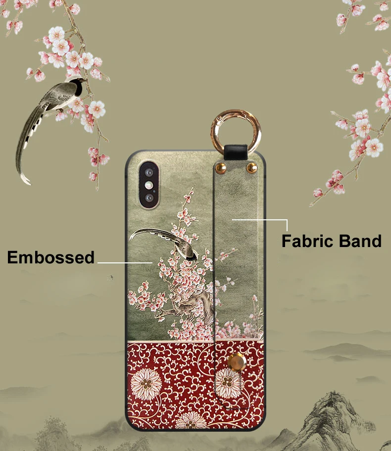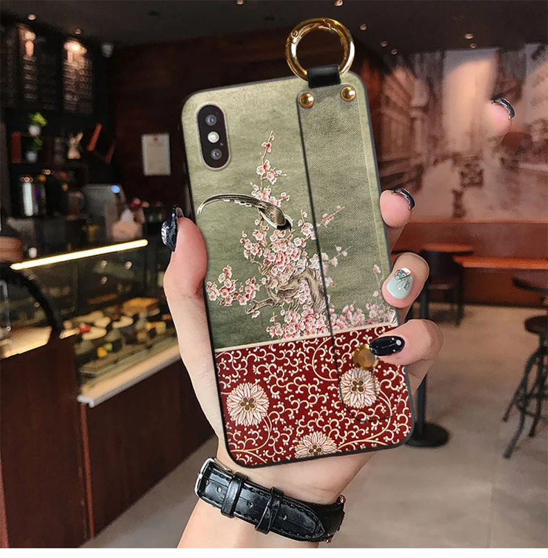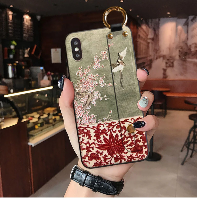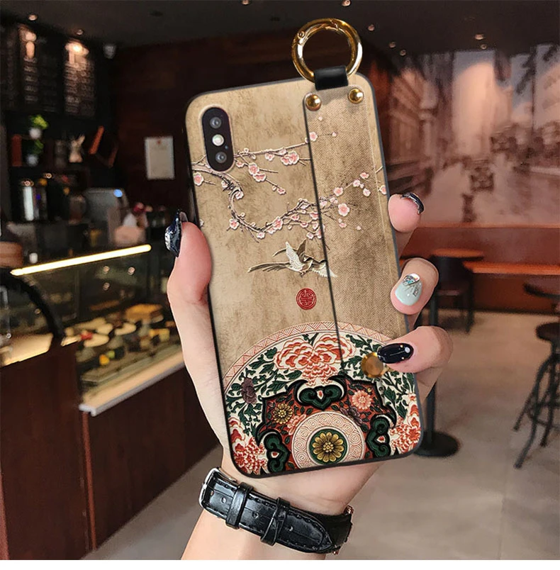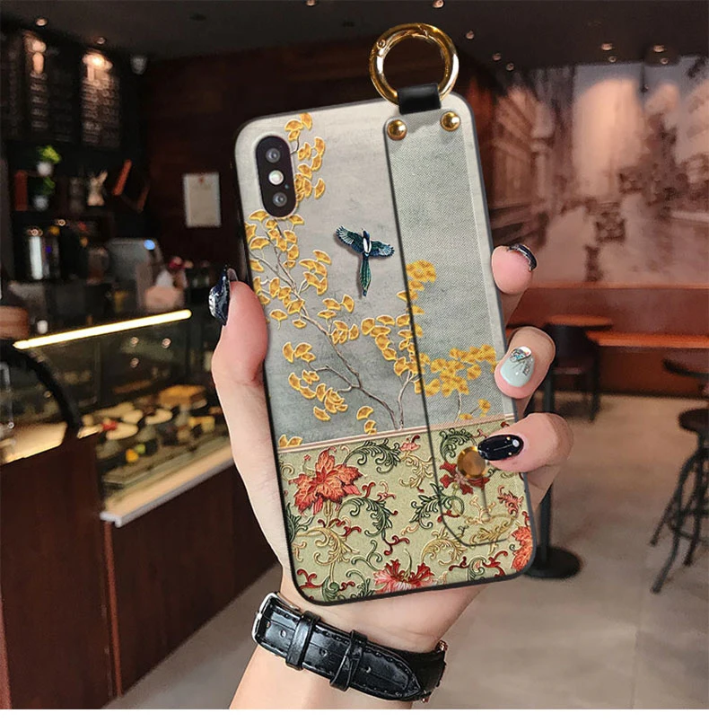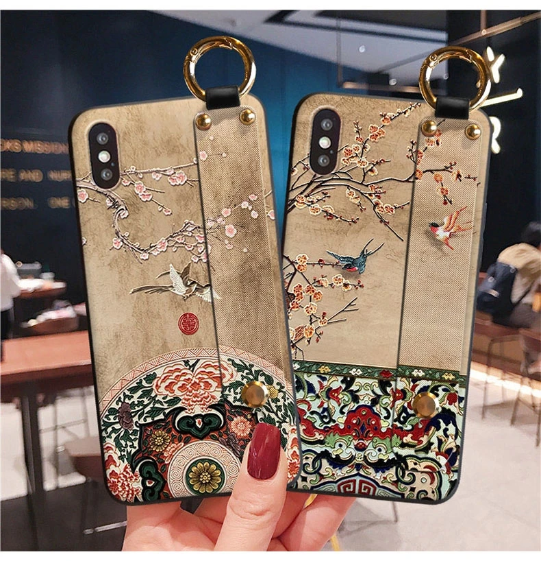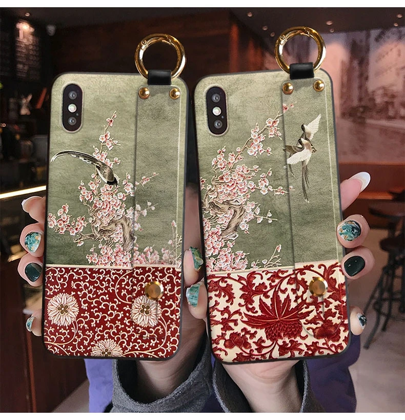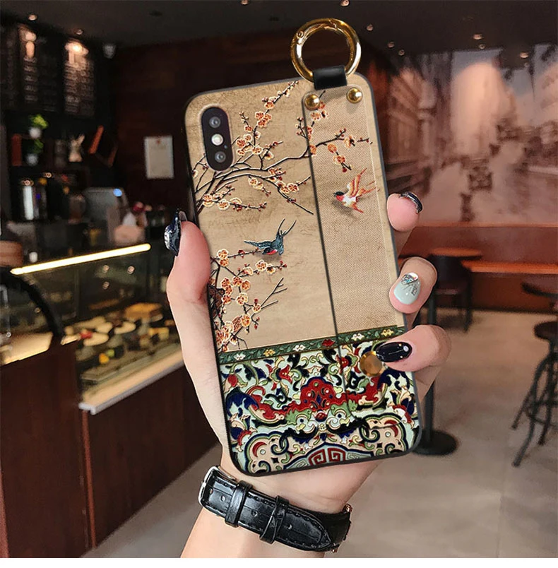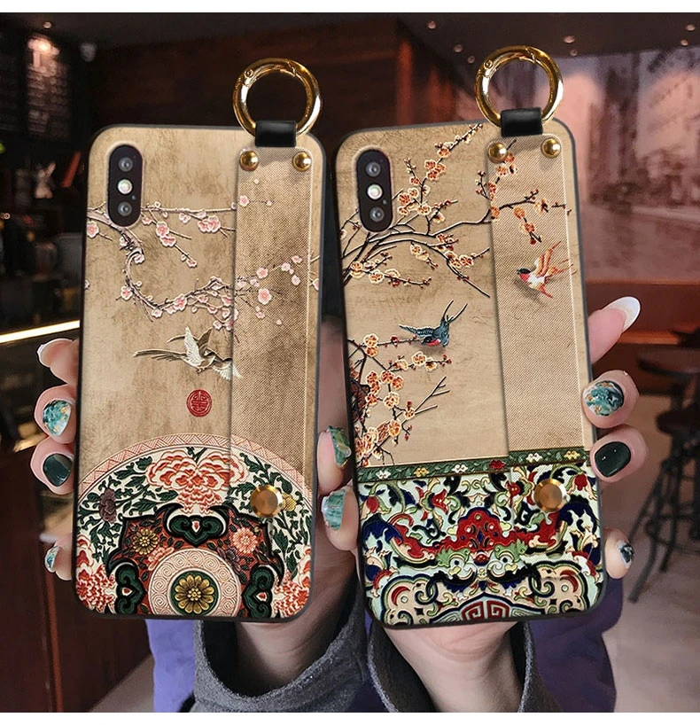 3D Relief Case for iPhone 11 Pro Max 11Pro XS Max XS XR X 7 8 6 6S Plus Cover Hand Band Stand Holder Retro Embossed Funda