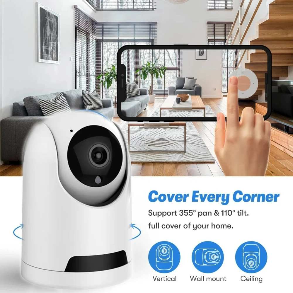Easily rotate 350° horizontally and 90° vertically to scan every corner in the room, It is a better option to watch on kids or pets playing around the room.