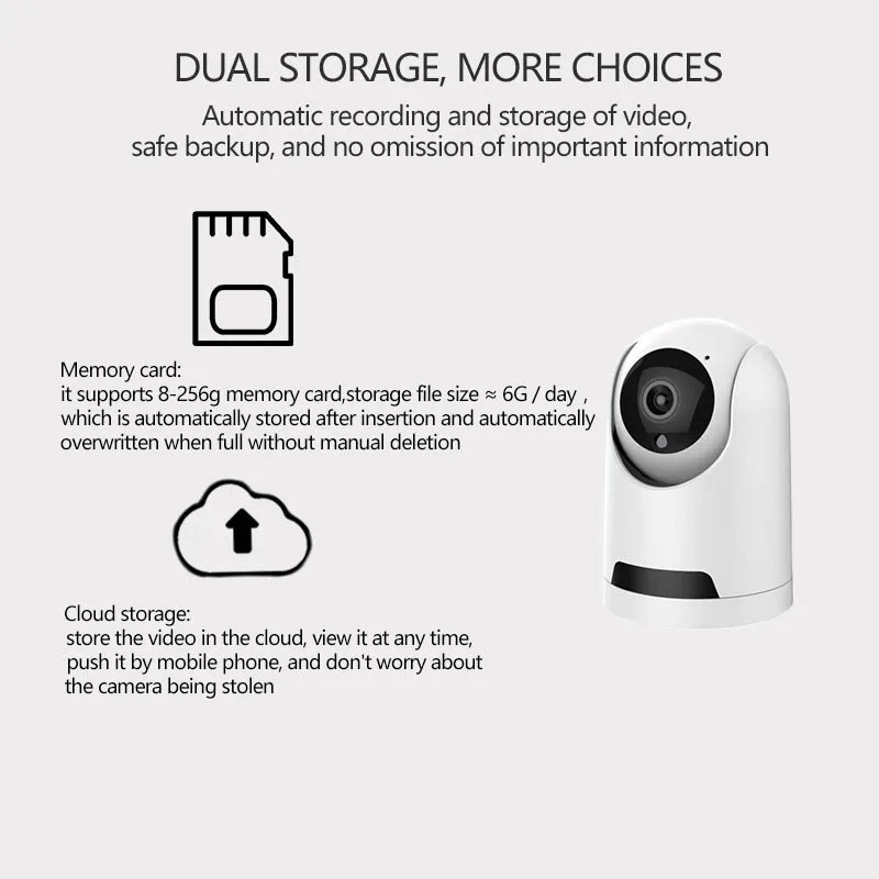 Supports Micro SD card storage up to 128GB, Cloud storage to avoid the risk of losing footage from SD card. (Cloud service need pay in app! ).